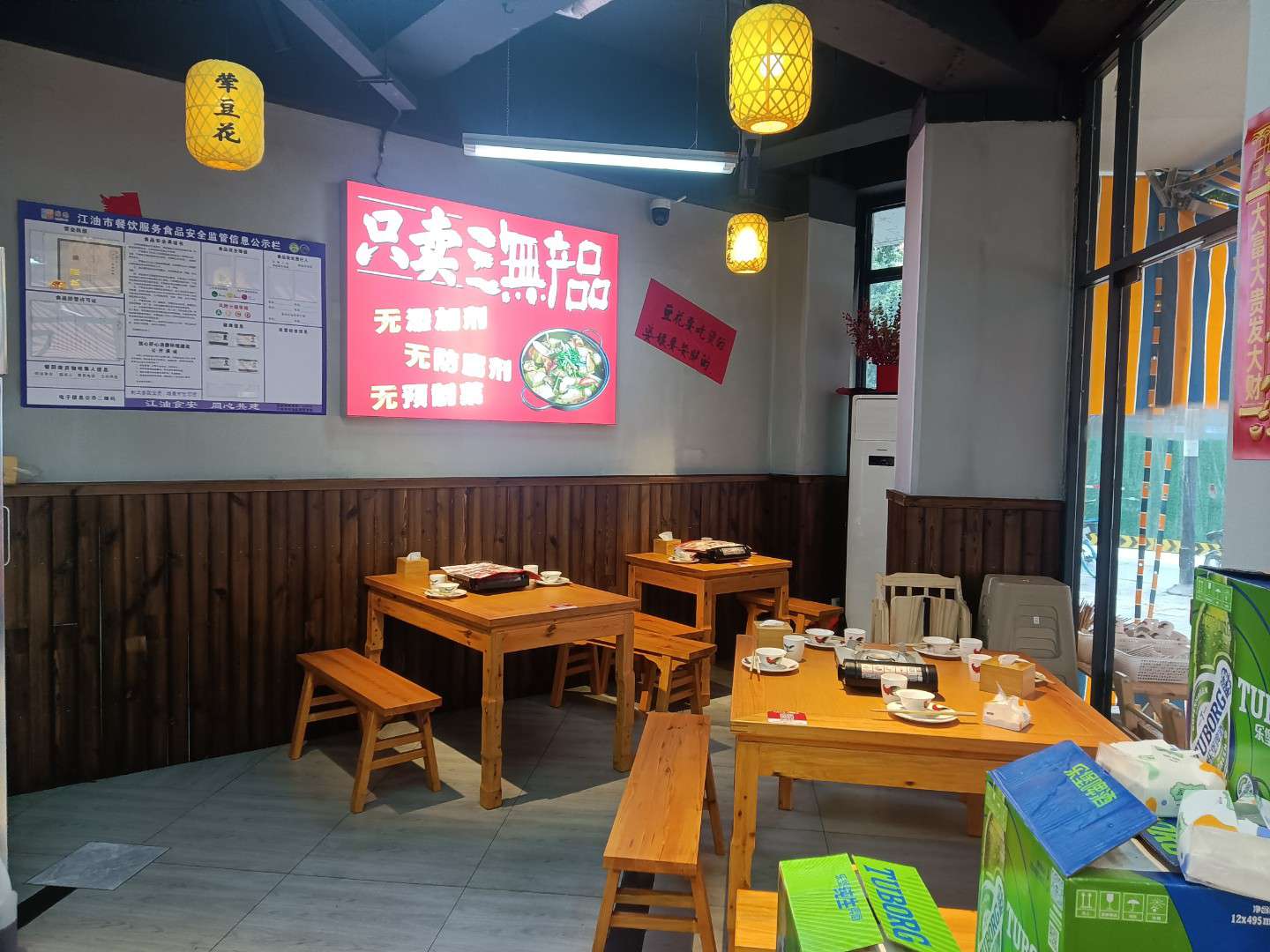江东红绿灯路口,位置优,人流大,店面积107个平方,外摆七八